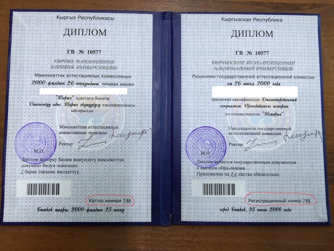 Сообщается также, что согласно полученному ответу КНУ имени Ж.Баласагына, З.Т.З не значится среди выпускников университета, а за указанным номером зарегистрирован диплом, выданный на другого гражданина. Отмечается, что факт вскрылся в ходе досудебной проверки, начатой по делу «Кумтора».