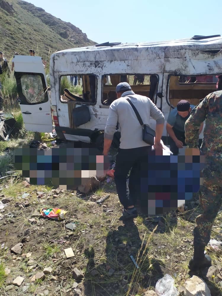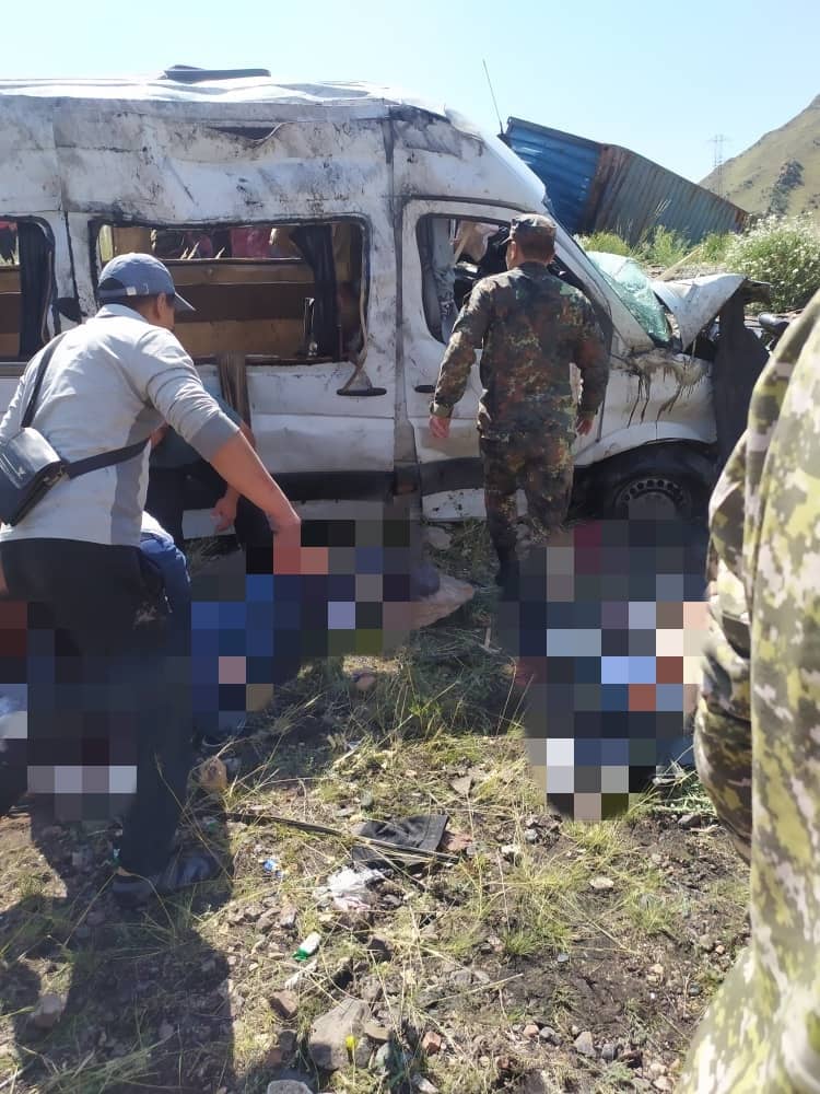 «Поступила информация о столкновении машины марки Mercedes-Benz Sprinter и грузовика МАН. Авария произошла на 172-м километре автодороги Бишкек — Нарын — Торугарт. В бусе находилось около 15 человек, из которых пятеро погибли (двое мужчин и три женщины). Десять человек получили различные травмы», — говорится в сообщении.
