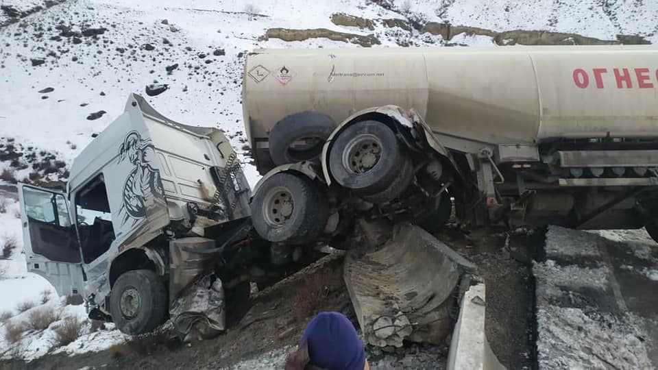 «По предварительным данным, ЧП произошло на 409-м километре автодороги на участке Беке-Чал. Бензовоз MAN врезался в дорожное ограждение, в результате чего перевернулся», — говорится в сообщении.