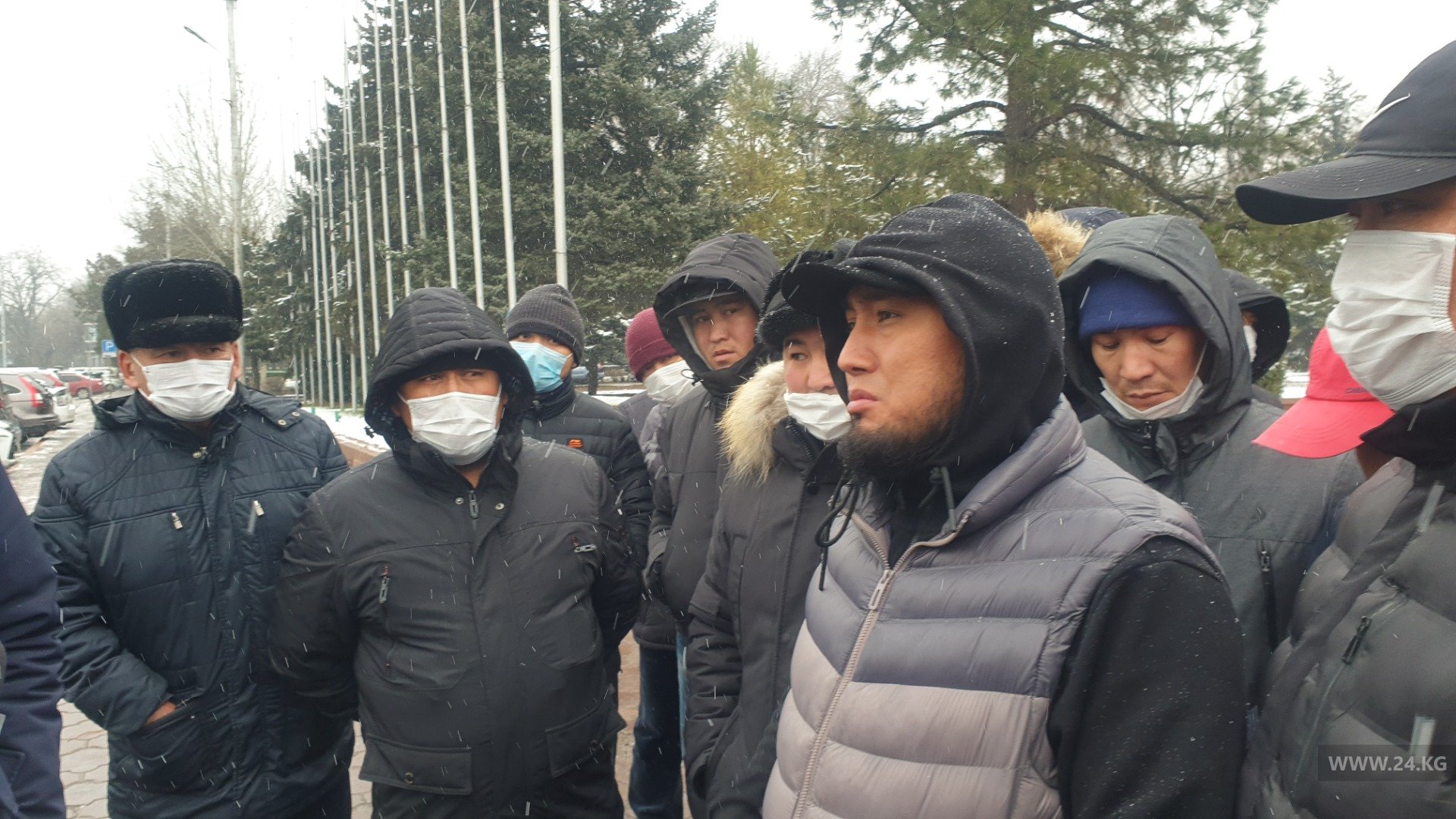 Участники акции объяснили это тем, что они приехали из Нарынской области и должны слышать, что говорит представитель власти.