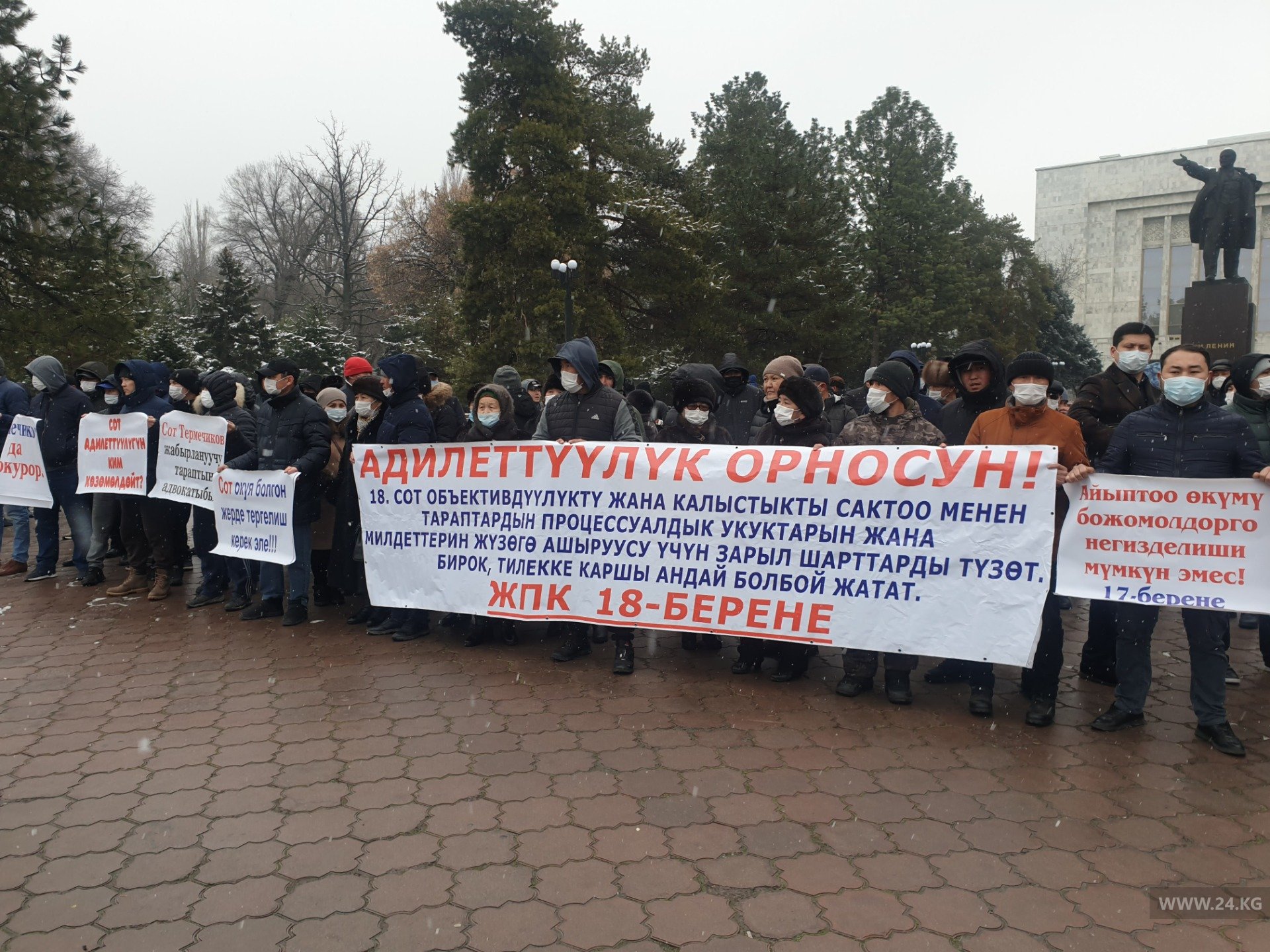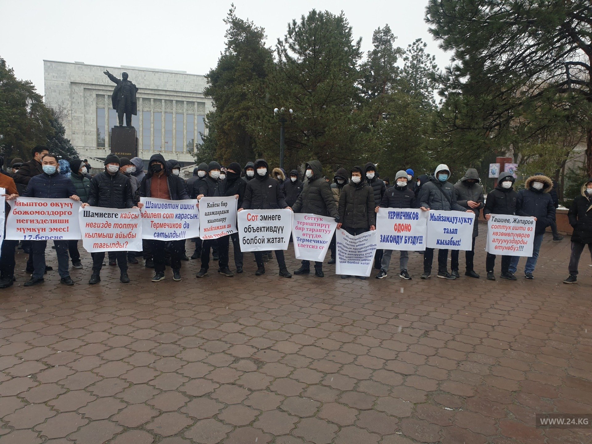 В Бишкеке около здания Дома правительства проходит митинг сторонников Талгата Шамиева, обвиняемого в убийстве криминального авторитета Алмазбека Сулайманова по прозвищу Лимонти.