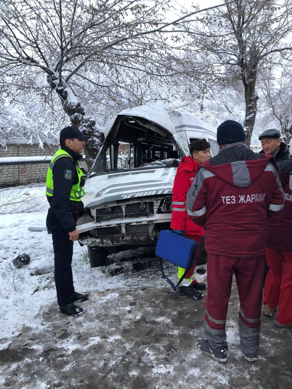 В Бишкеке маршрутка № 193 врезалась в дерево. Водитель скончался на месте