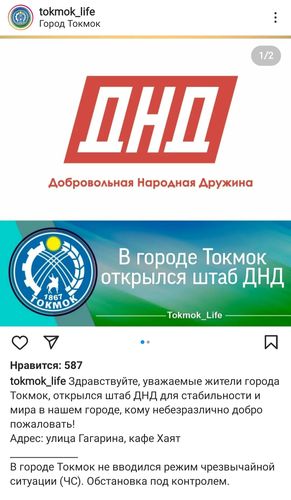 В Токмаке создан штаб народной дружины. Информация о создании штаба ДНД появилась в социальной сети Instagram.