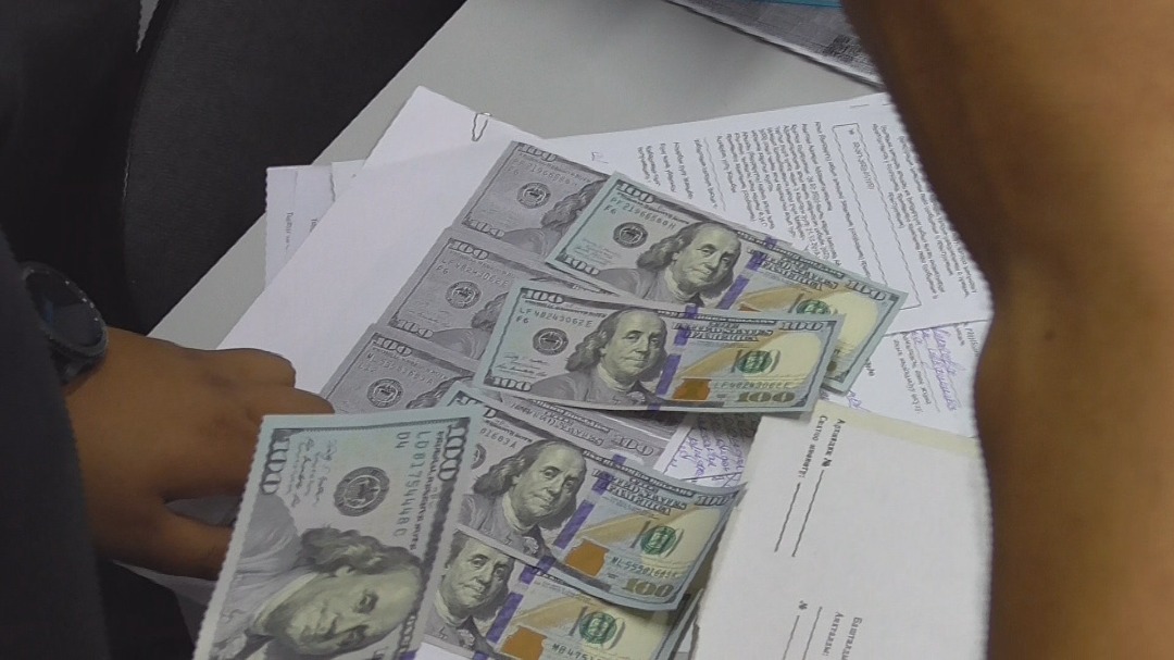«28 июля при получении $2 тысяч задержаны следователь следственной службы старший лейтенант милиции Ж.Т.С. и оперуполномоченный ОУР капитан милиции Б.Т.С. Задержание происходило совместно со службой внутренних расследований МВД», — говорится в сообщении.