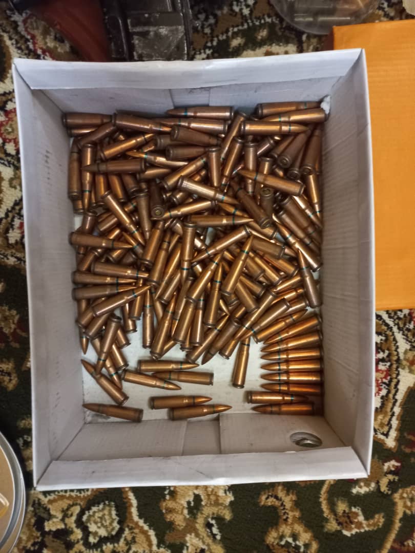 - цинк с патронами: калибра 7,62 — 3 штуки, 7,62— 19 штук; 9 миллиметров — 12 штук, 9 миллиметров — 7 коробок в количестве 1 тысяча 120 штук;