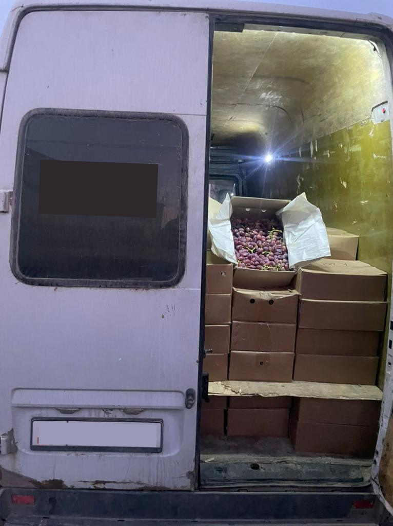 При досмотре грузового отсека обнаружено 2 тысячи 200 килограммов винограда на сумму 132 тысячи 500 сомов.
