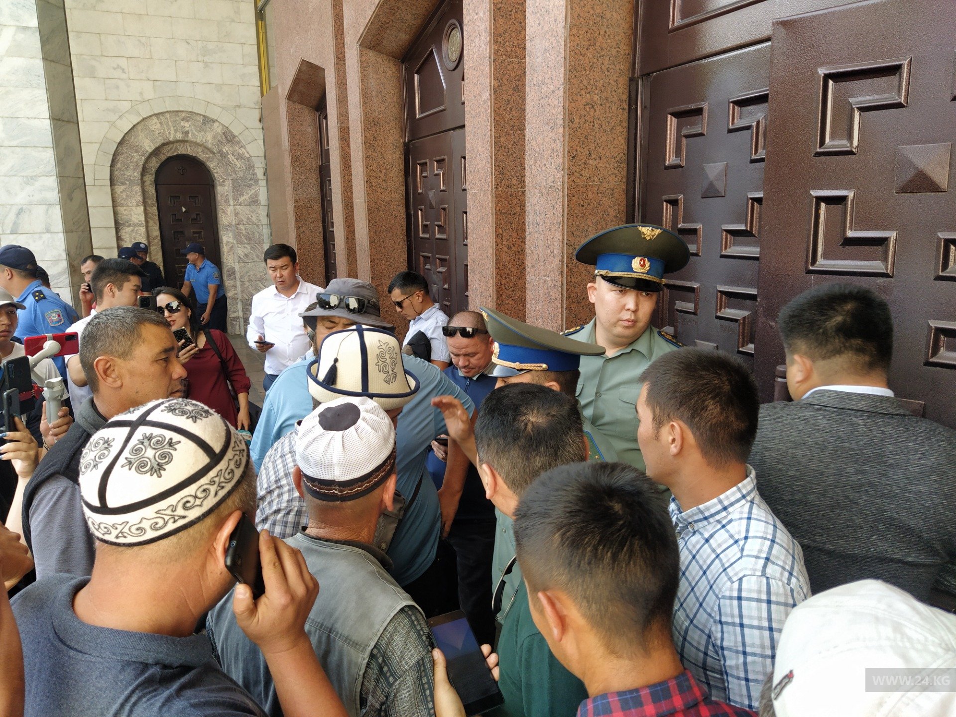 Пятерых представителей митингующих запустили в Жогорку Кенеш для встречи со спикером Талантом Мамытовым.
