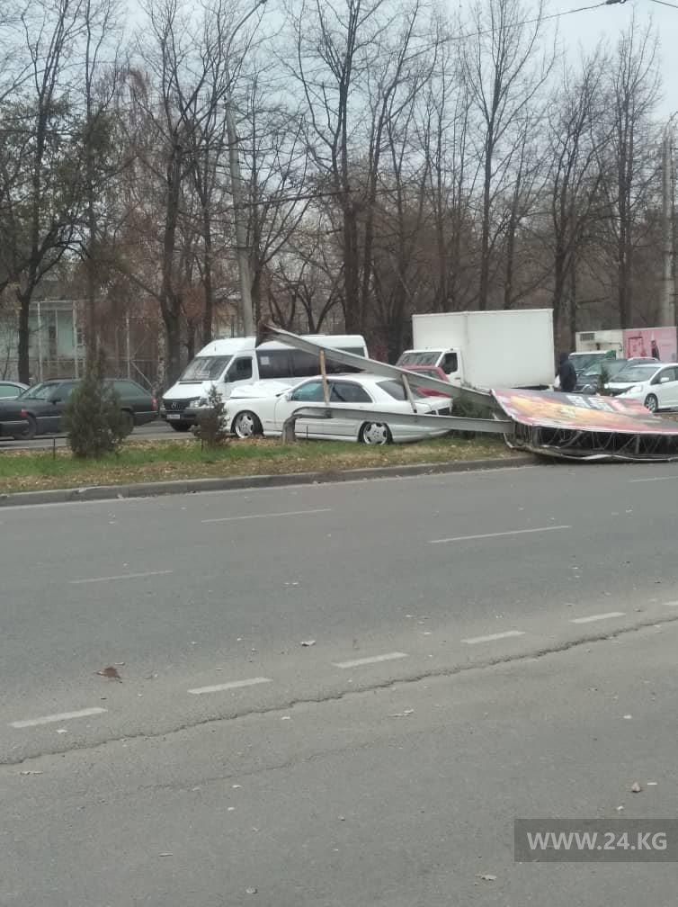 В Бишкеке из-за заклинившего руля водитель врезался в рекламный щит. Об этом 24-kg.com сообщили очевидцы происшествия.