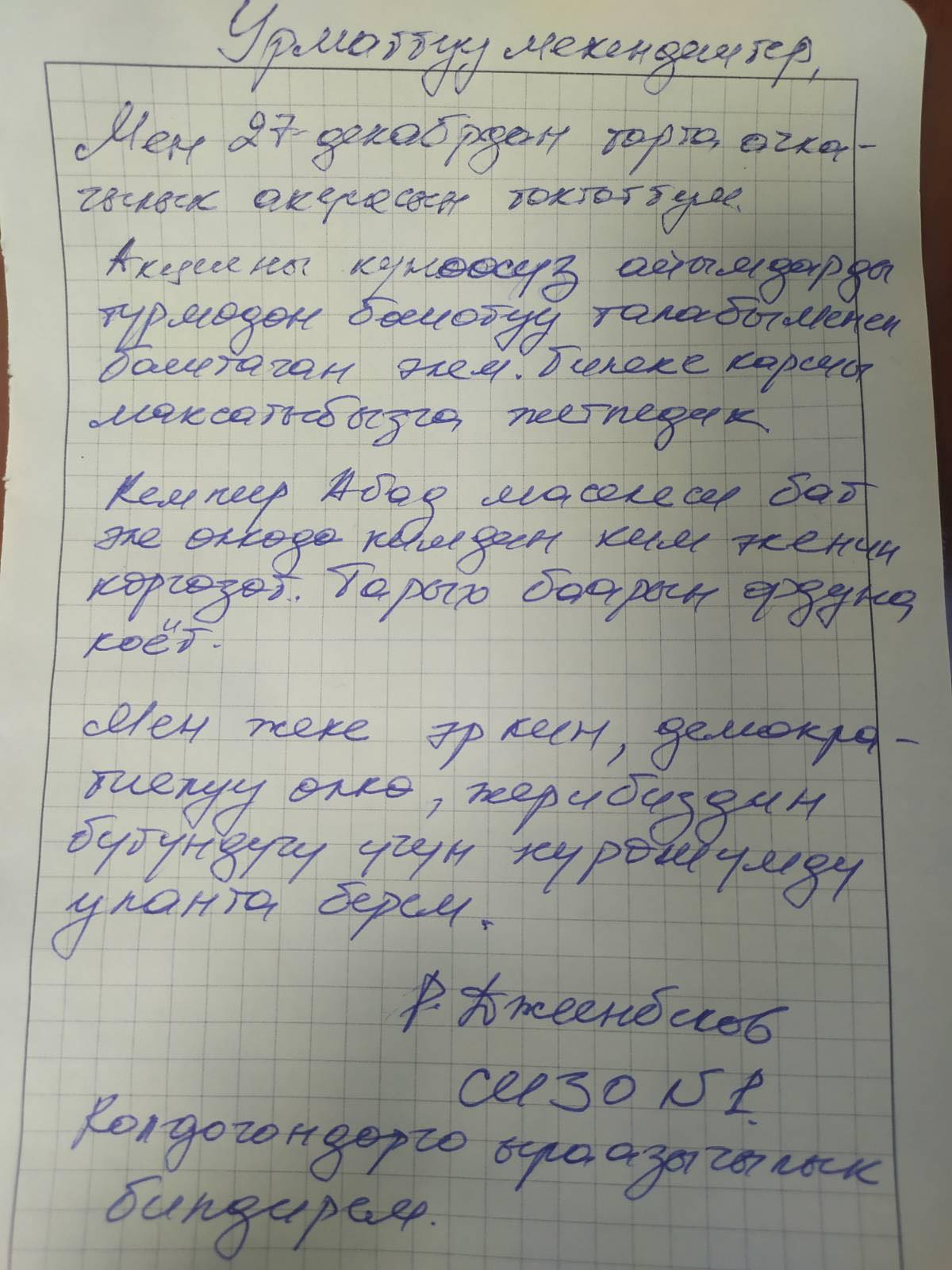 В нем указывается, что Рита Карасартова прекратила голодовку 27 декабря. Она отметила, что всех задержанных ждет борьба за свободу.
