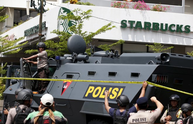 Теракты в центре Джакарты устроила группа из 10-14 боевиков, в том числе нескольких террористов-смертников. По словам очевидцев, после взрывов последовала перестрелка, в ходе которой погиб по меньшей мере один офицер полиции.