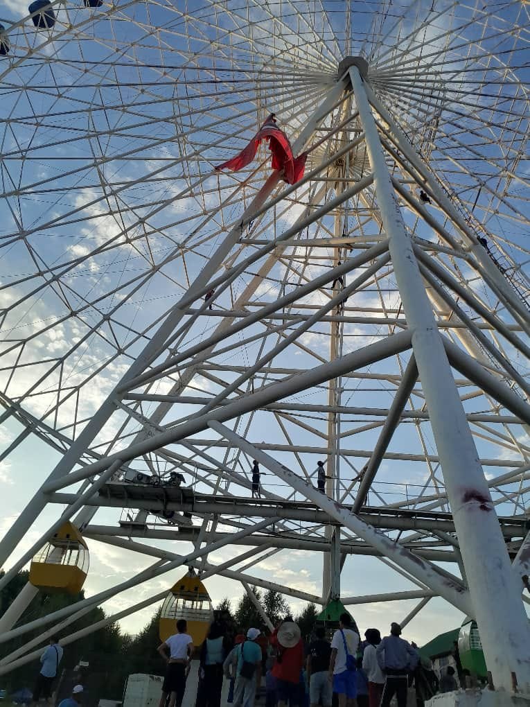 Его заметили сотрудники службы по охране общественной безопасности. Бойцы отряда специальных операций МВД приказали остановить работу колеса обозрения. Мужчину с поручней сняли.