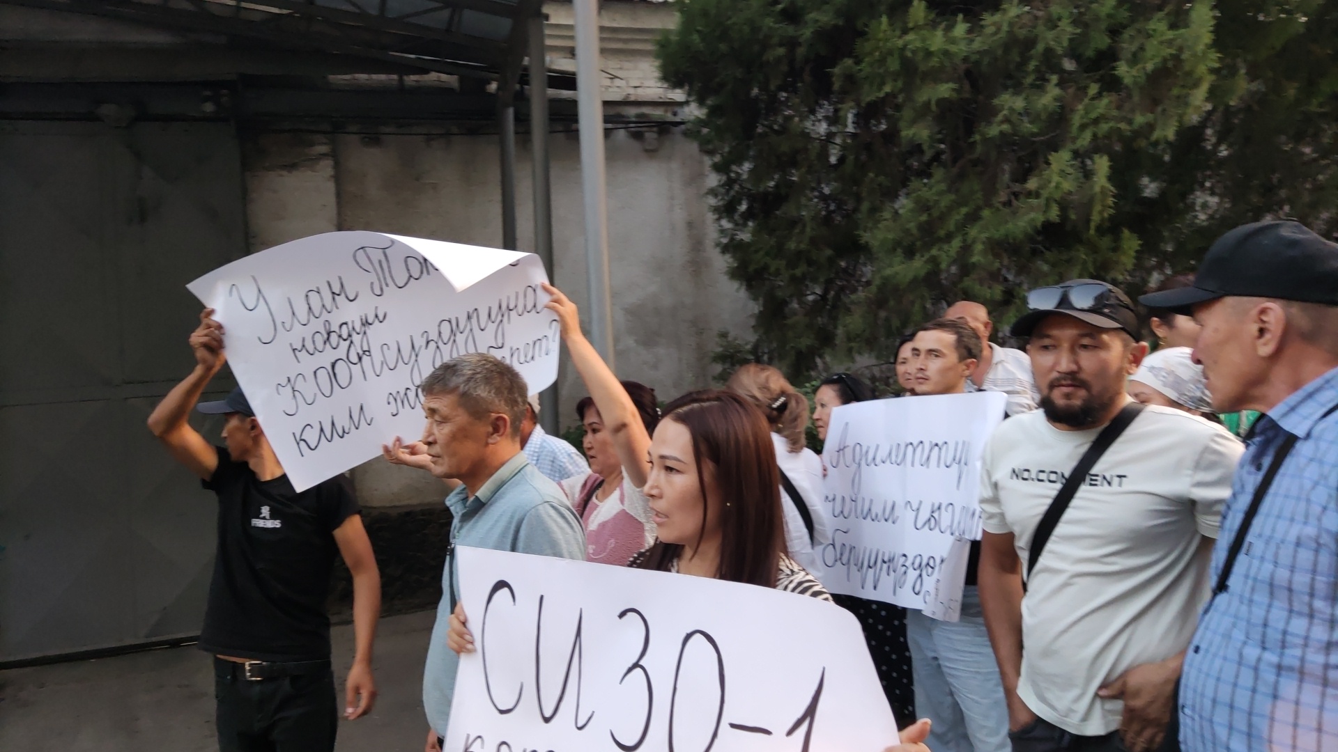 Около следственного изолятора собрались около 30 родственников осужденного. Они требуют, чтобы Улан Токтосунов отбывал наказание в СИЗО города Нарын.