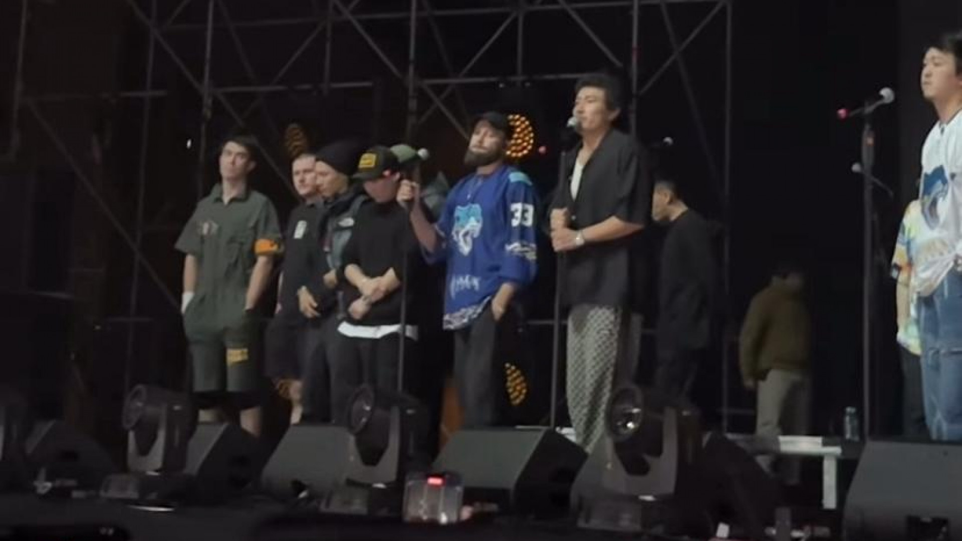 Видео с участниками группы активно распространяется в соцсетях. Как выяснилось, мобилограф упал на сцене и умер. Мероприятие отменили.