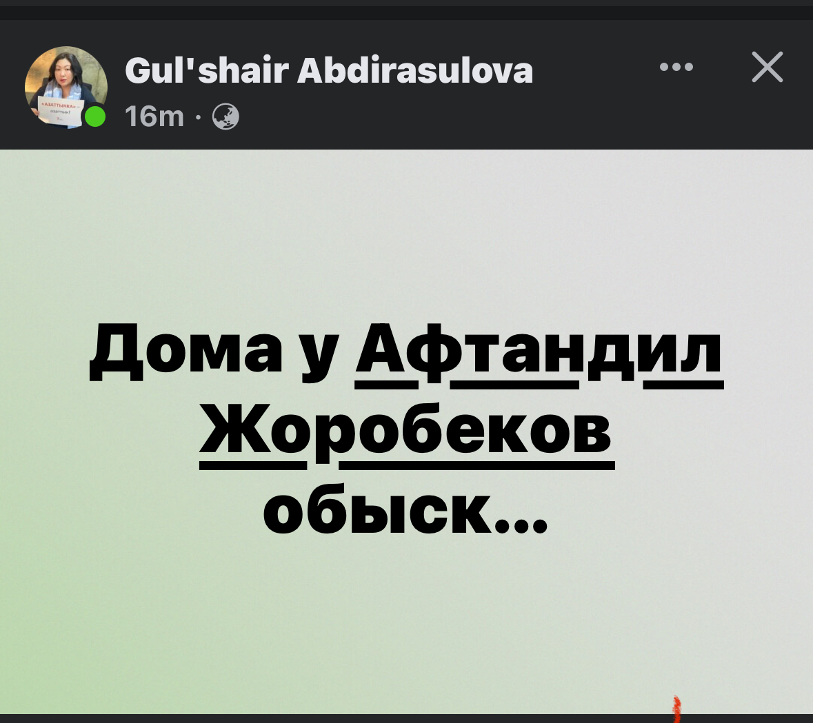 Правозащитники также сообщили, что в доме Афтандила Жоробекова сейчас проводится обыск.