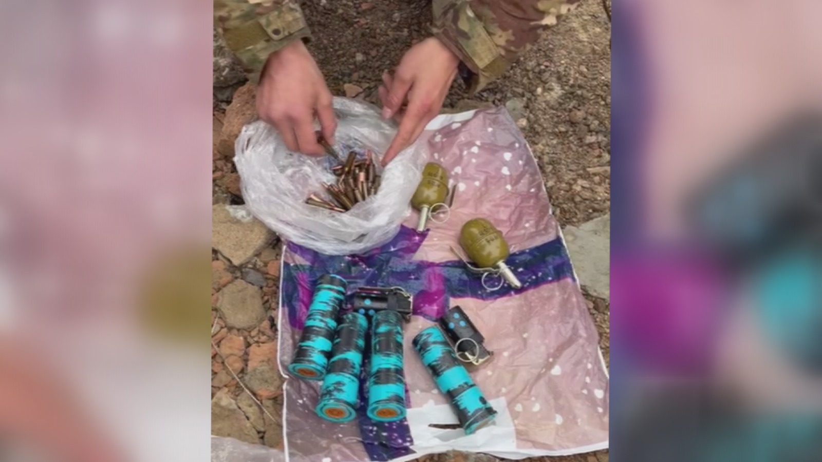 «Изъяты две ручные боевые гранаты РГД-5, две светошумовые гранаты иностранного производства, четыре дымовые шашки, 16 патронов к снайперскому оружию калибра 7,62×54 и 42 патрона к автомату Калашникова калибра 5,45×39», — говорится в сообщении.