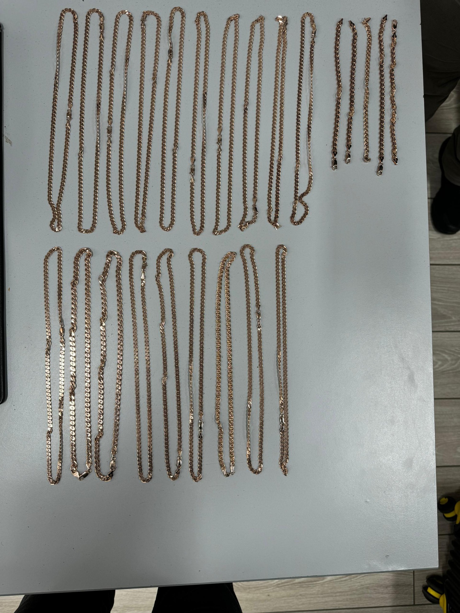 По ее данным, сотрудники таможни «Манас» в рамках таможенного контроля пассажиров, прибывших по маршруту Стамбул — Бишкек, задержали гражданку Кыргызстана А.К. по факту сокрытия от таможенного контроля товаров. Она пыталась провезти под одеждой ювелирные изделия из золота (цепи, браслеты) в количестве 24 штук весом 373,10 грамма. Среднерыночная стоимость задержанных ювелирных изделий составила 1 миллион 905 тысяч 19 сомов.