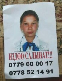 По ее данным, 7 марта около 17.30 она вышла из дома и не вернулась. О пропаже девочки в МЧС сообщили только 15 марта. Спасатели ищут ее в заброшенных зданиях, на берегу реки Нарын. Пока без результатов.