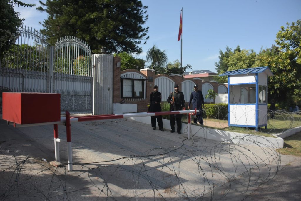 «Дополнительный контингент полиции прибыл в район посольства для обеспечения безопасности дипломатов. Полиция установила ограждения из колючей проволоки вокруг посольства», — сообщает издание.