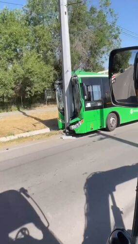 В Бишкеке автобус врезался в столб, сообщил 24-kg.com читатель и прислал видео с места ДТП.