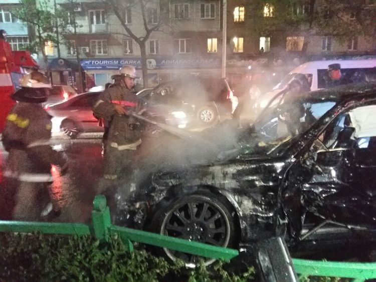 В результате столкновения «Мерседес-Бенц» загорелся. Прибывший на место пожарный расчет локализовал возгорание. По предварительным данным, в результате ДТП ни водитель такси, ни водитель «Мерседеса» не получили серьезных травм.