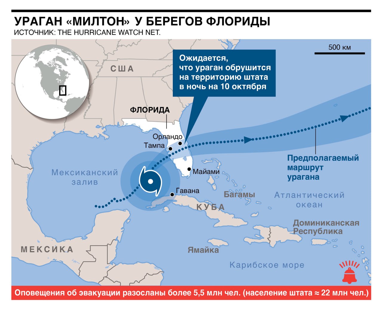Предупреждения о «Милтоне» появились спустя две недели после того, как 277 человек погибли в шести штатах в результате урагана «Хелен». «Хелен» стал самым смертоносным на материковой части США после урагана «Катрина» в 2005-м, который унес жизни более 1 тысячи 800 человек.