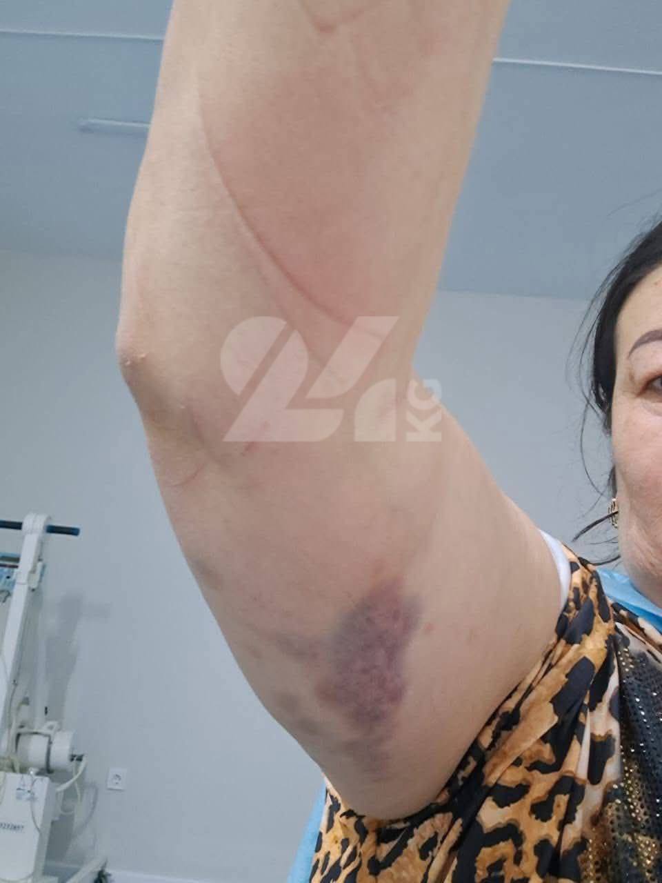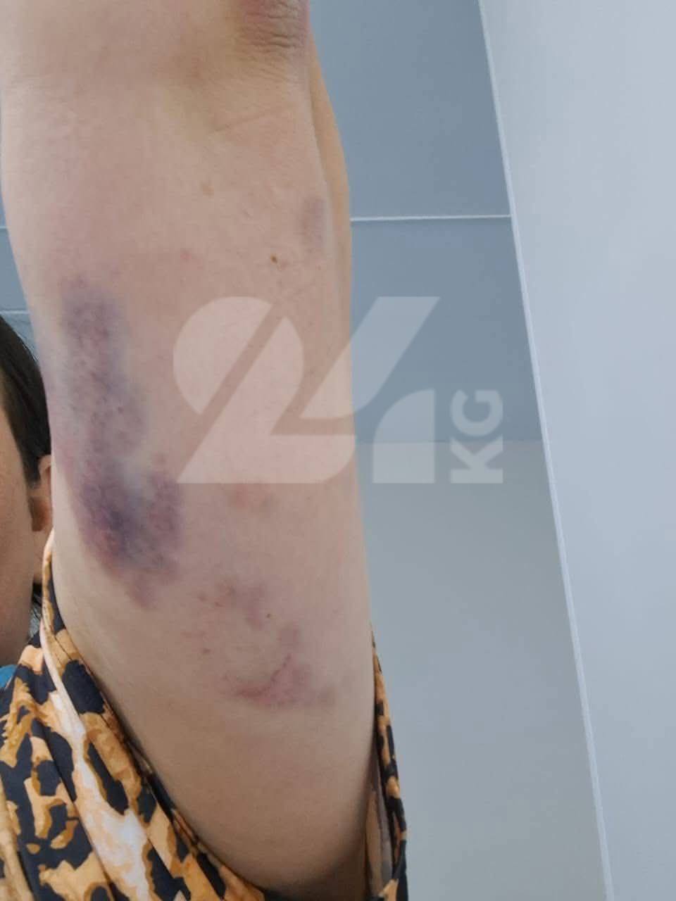 В социальных сетях появились фотографии, на которых бывший депутат парламента Султанбай Айжигитов лежит на больничной койке: у него гематомы на руках и рассечена бровь. На опубликованных снимках также видны синяки на обеих руках его супруги Гульшат Жолдошевой.