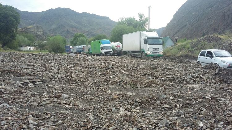 По ее данным, 16 июня в 21.20 в городе Таш-Кумыре из-за проливного дождя прошел сель, остатки которого в семи местах перекрыли участок стратегической трассы между 430-м и 435-м километрами. Жертв нет.