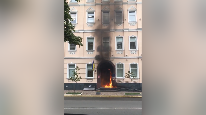 По предварительным данным, мужчина проник в Дом министерств в центре столицы и бросил зажигательную смесь в турникет на входе.