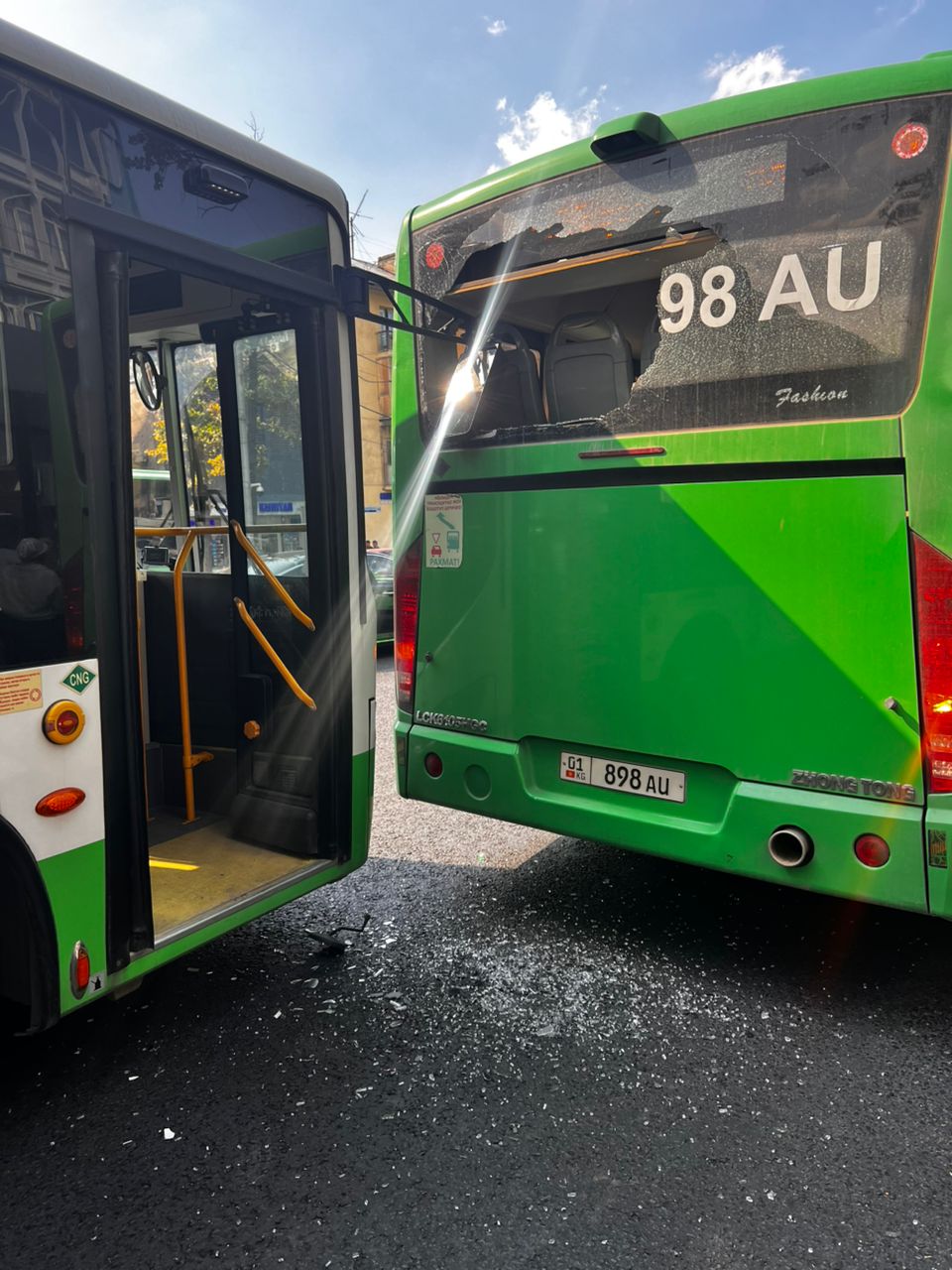 Два автобуса столкнулись на пересечении улиц Боконбаева и Абдрахманова в Бишкеке