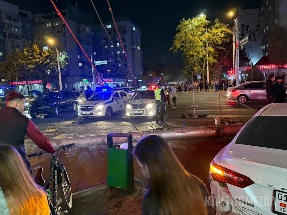 По их данным, авария произошла на пересечении улиц Абдрахманова и Боконбаева. По предварительной информации, один из автомобилей двигался с большой скоростью, а в это время другая легковушка хотела проехать на мигающий зеленый сигнал светофора. В результате две машины столкнулись. Одно из авто от удара отбросило в сторону. Удар был такой силы, что машина снесла светофор и фонарный столб.