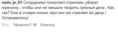 • «Сотрудники помогают стрелкам, убирают мужчину, чтобы он не мешал творить грязные дела. Как так? Они в сговоре с ними, при них же стреляет во двор! Остановитесь!» — возмущены люди.