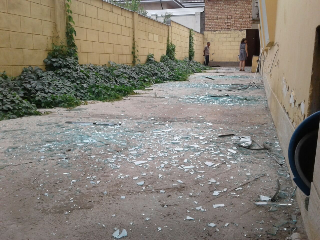В одном из домов возле китайского посольства ударной волной от взрыва, произошедшего сегодня утром, выбило практически все стекла.