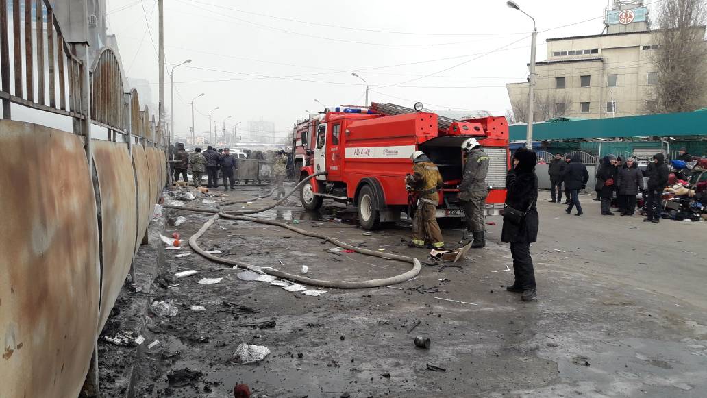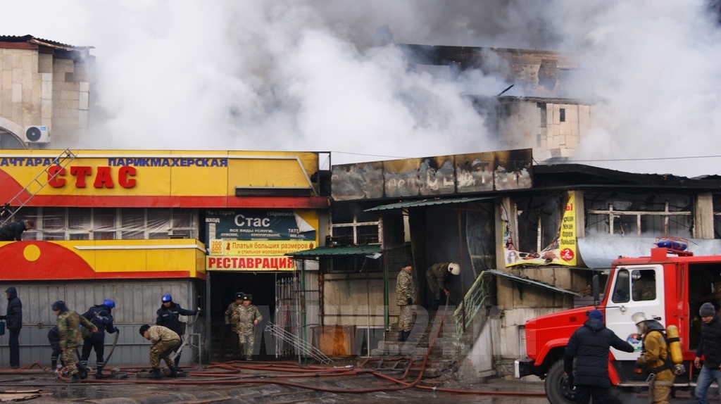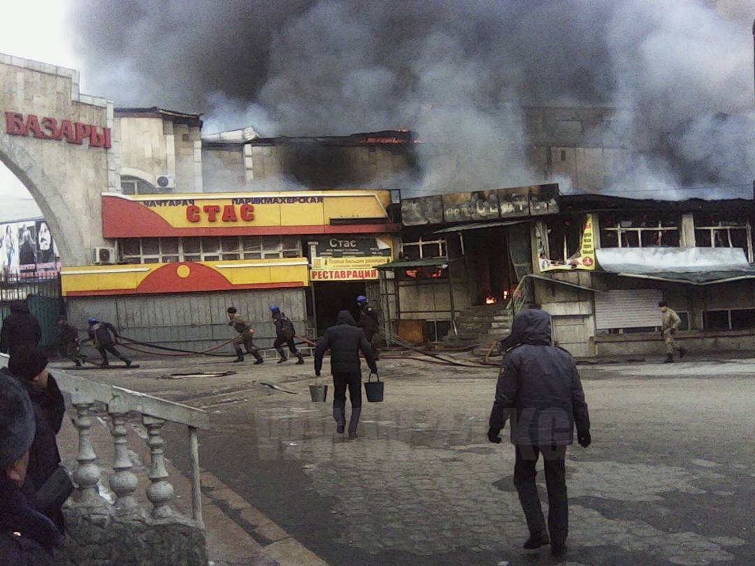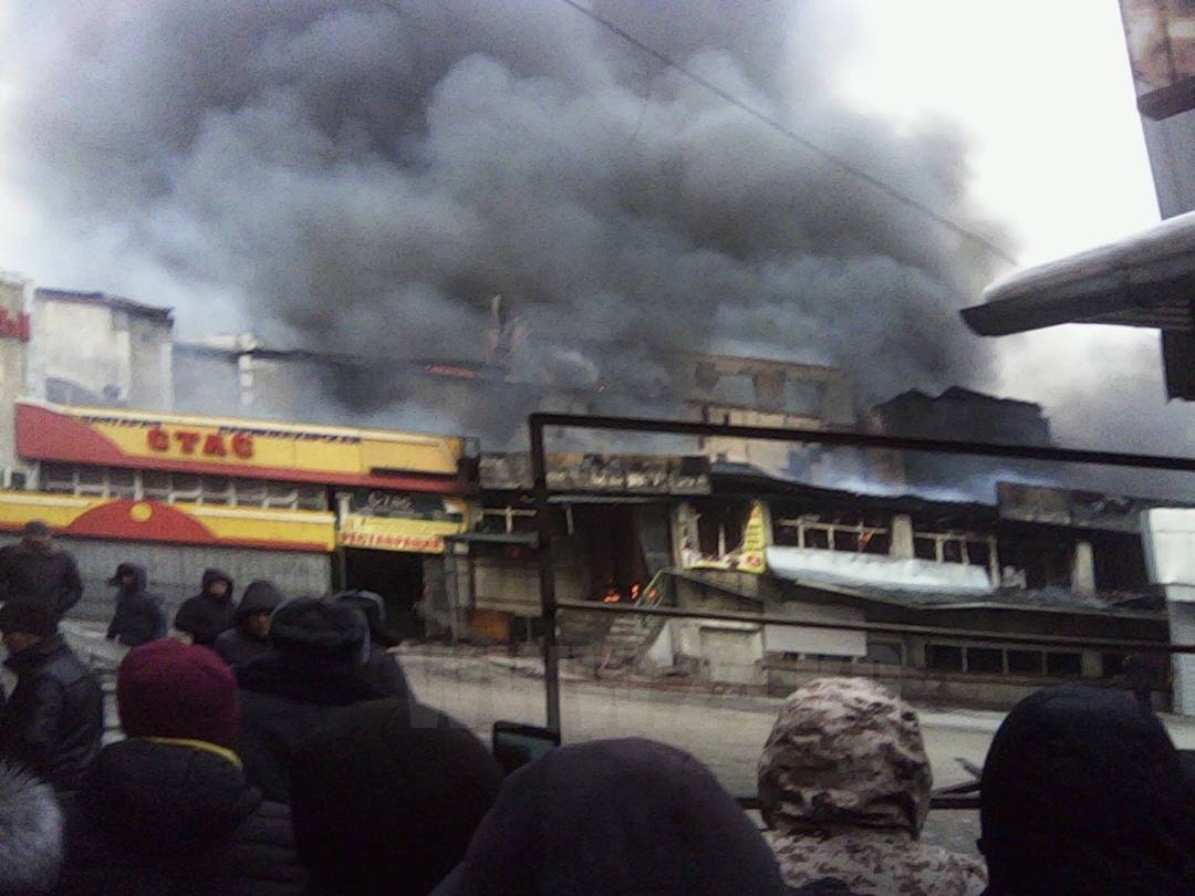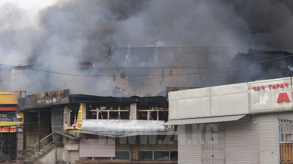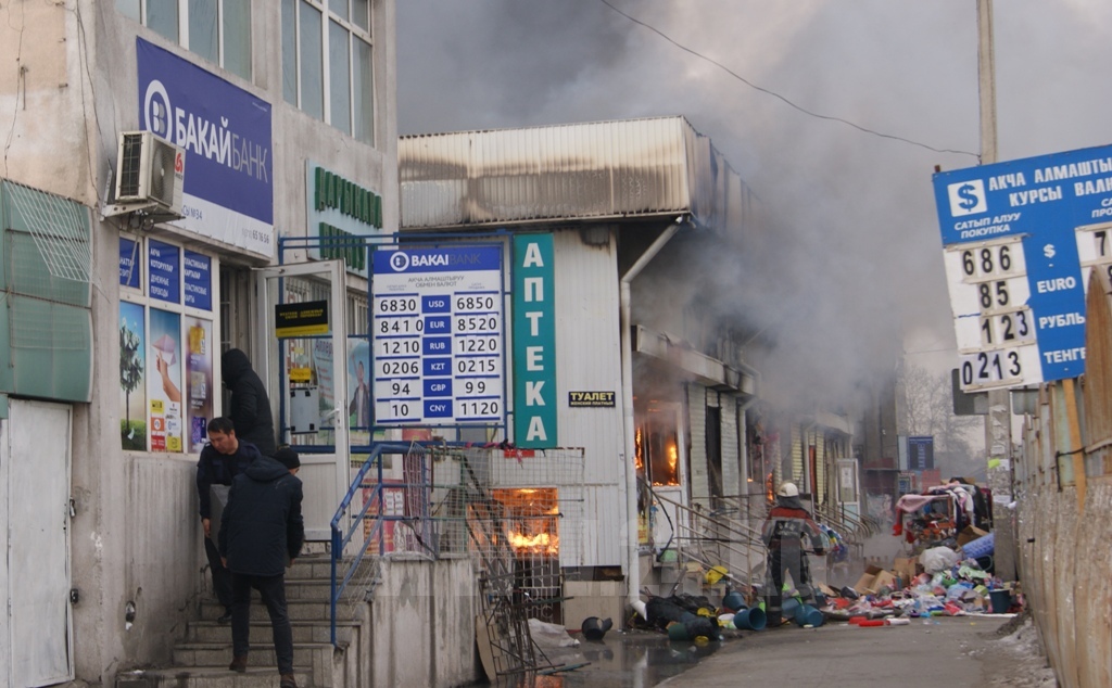 В Бишкеке горит Ошский рынок. Огнем охвачены торговые павильоны.