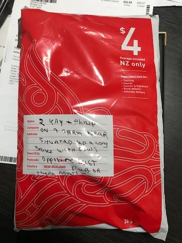 В середине марта почтовая служба городка Каст в Новой Зеландии попросила пользователей Facebook помочь найти адресата одной посылки. Вместо улицы и дома на свертке были указаны имена — Кей и Филипп — и описание местности. Отправитель просил доставить посылку на ферму, расположенную рядом с пабом на длинной дороге с коровами. Историю об этом сообщила meduza.io.