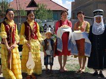 Исчезающие блюда кыргызской кухни. Ну кто же не заинтересуется тем, что это такое, а тем более не попробует? Тут в свои права вступает гостеприимная хозяйка дома Жийдебюбю Исакова. Вот, к примеру, кожо, делится она своими знаниями: к длительно проваренному вяленому мясу добавляют хорошо промытую пшеницу, чеснок, соль, варят еще 3-4 часа. Можно запивать айраном. Сут жупка – это когда тонкое тесто обжаривают и, ломая, добавляют в молоко с топленым маслом. Сама пробовала – очень вкусно и, главное, сытно, потом можно и не обедать. Уверена, что и куурма чай – такое же блюдо, так как содержит обжаренную муку, к которой добавляются топленое масло или жир, холодная вода, чай и молоко, которые следует все вместе хорошо прокипятить. Эти три древних блюда, говорит хозяйка, мы должны сохранить, ведь они когда-то спасали жизни нашим предкам. А чай они, оказывается, пили совсем не тот, что пьем сейчас мы. Они просто заваривали травы, такие как чабрец и зверобой. Это помогало сохранять здоровье. Конечно, на столе красовались и традиционные беш-бармак, боорсоки, причудливые мясные «утки» и прочая вкусная снедь. Всем своим видом гости показывали: такое забыть невозможно.