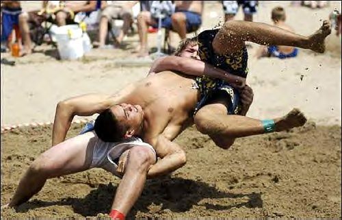 Начало июля в Кыргызстане выдалось жарким. Люди стремятся на пляж поближе к воде. Многие едут на Иссык-Куль, кто-то – в Турцию. И только спортсмены трудятся в любую погоду. Правда, некоторым, ввиду особенностей их видов, удается сочетать приятное с полезным. К ним относится пляжная борьба. Накануне в Карагачевой роще прошел открытый чемпионат Бишкека по данному единоборству.