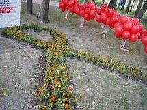 В рамках акции посадили цветы в форме ленточки, символизирующей СПИД. Больше всего от акции удовольствие получил дети, которым подарили шарики, однако и взрослые получили много полезной информации.