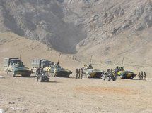 Второй эпизод маневров оказался более зрелищным. Около 15 вооруженных лиц с ишаками, предположительно груженными взрывчаткой, незаконно пересекли границу через горы. Остановились на привал. Тут пограничники появились. Начался бой. Нашим выслали подмогу. Поднялся вертолет и высадил на сопке десантников. Вскоре появились БМП – аж пять штук! Выстроились шеренгой и двигаются вперед. Рядом пехотинцы. Стрельба, взрывы, дым, пыль… Зрелищно, хоть кино снимай.