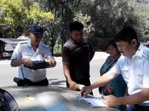 Сотрудников СМИ разделили по четырем районам Бишкека. С одной из групп едем на пересечение бульвара Молодой Гвардии и улицы Баялинова (бывшая Ленинградская) в Первомайском районе столицы. На месте дежурят сотрудники ДПС и налоговой службы. Участок отличается от центра города тем, что здесь много не только легковых, но и грузовых авто. Первые минуты рейда показывают, что водители грузовиков более ответственные. Среди них не оказалось должников. С владельцами легковушек дела сложнее.