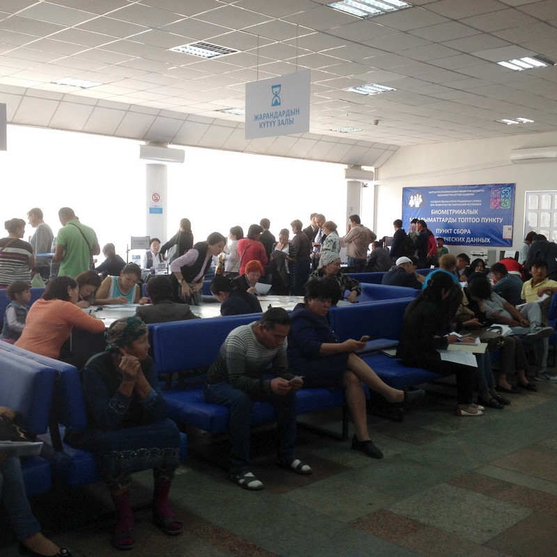 Сегодня, решив выяснить, что же происходит в городском Центре обслуживания населения, журналист ИА «24-kg.com» отправился на место. Учитывая, что в здании размещены паспортные столы трех районов города, можно смело сказать, что народа не так много: четко работает электронная очередь, возле каждого окошка, где оказывают государственные услуги, небольшие очереди, за исключением двух кабинетов, где на удобных диванчиках в центральном зале расположились фотографы и ожидающие.