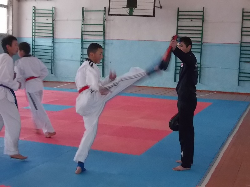 В селе Джети-Огузе прохладно, лежит снег. Но разве может непогода быть преградой для желающих заниматься спортом? При школе действует секция таэквондо WTF, являющаяся иссык-кульским представительством ассоциации данного вида спорта КР.