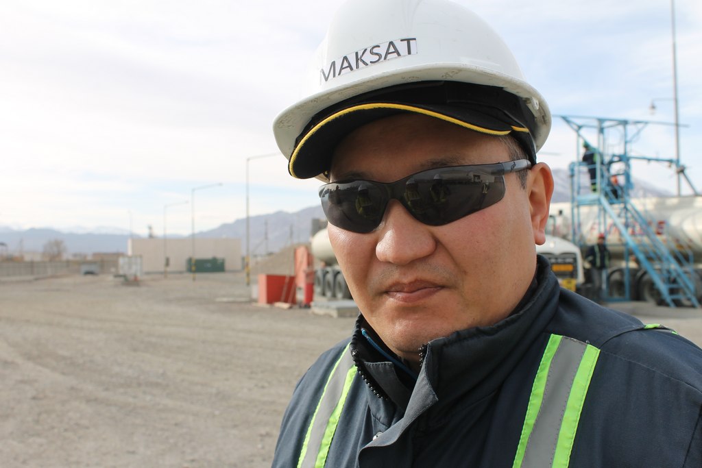 - Топливо, которое приходит на нефтебазу в железнодорожных цистернах, мы сливаем в резервуары для хранения, после распределяем на заправку как автотранспорта компании, так и автотанкеров для доставки горюче-смазочных материалов на рудник, - рассказывает руководитель склада ГСМ на перевалочной базе «Кумтор Голд Компани» в Балыкчи Максат Кадыралиев.