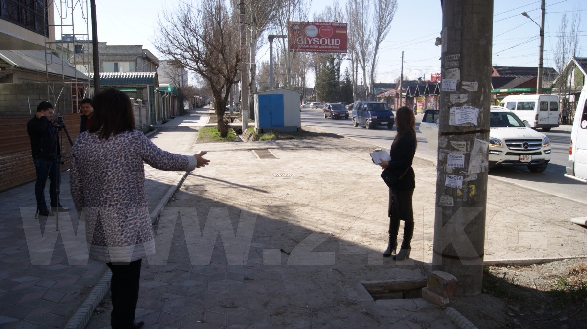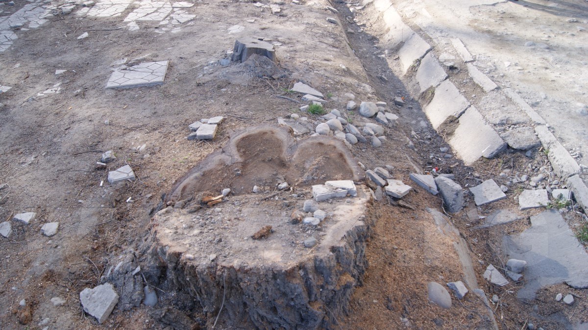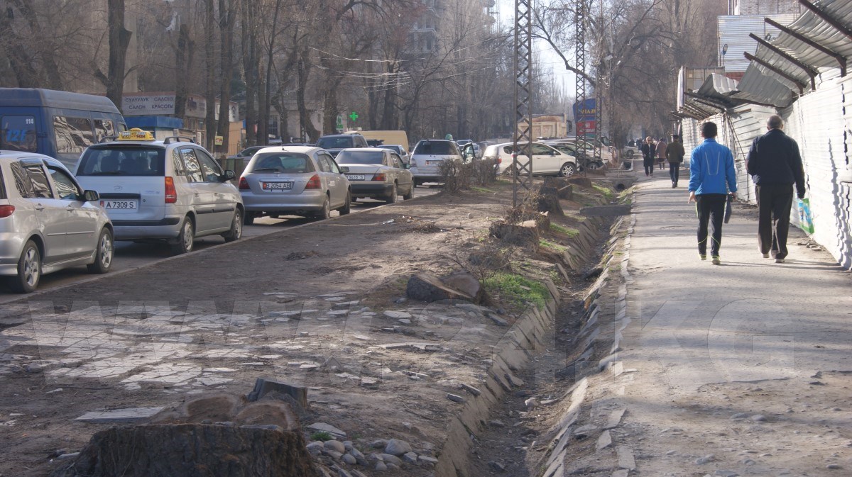 Одним словом, Бишкекглавархитектура отдала под благоустройство участок от дома до края проезжей части, а застройщик, то ли прикрываясь плохим знанием русского языка, то ли непониманием терминов, слово «благоустройство» понял по-своему - как вырубку деревьев.
