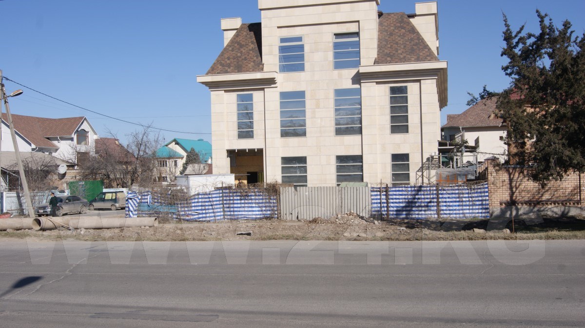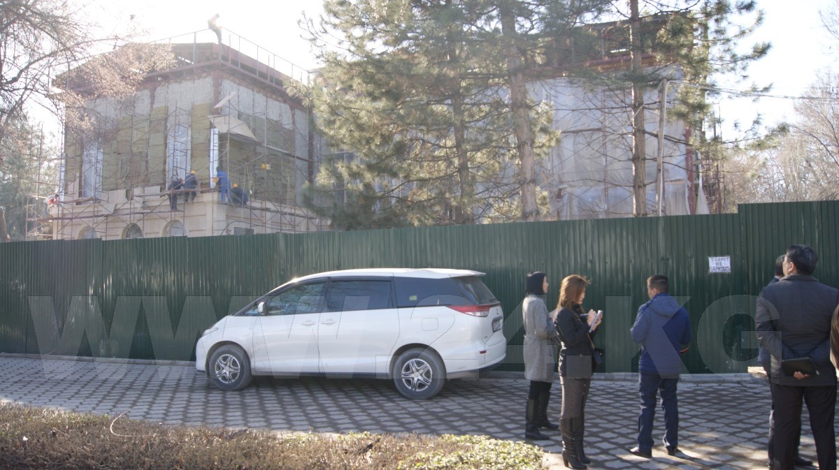 Следующий пункт – улица Абдумомунова, возле здания МИД. Здесь прямо на краю Дубового парка возводится трехэтажное крупное здание, предположительно кафе, окруженное высоким забором.