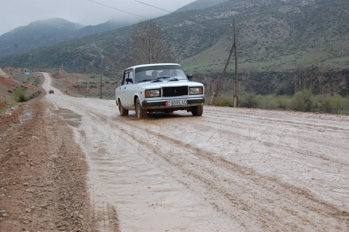 Из западной части Джалал-Абадской области нам предстояло проехать в ее восточную часть. У села Кызыл-Жар Аксыйского района остановились возле развилки трех дорог. Направо решили не ехать, состояние трассы говорило само за себя: не надо, ребята, машины ломать. А про остальные две решили спросить у стоящих неподалеку местных таксистов. Оказалось, что обе дороги ведут в Джалал-Абад.