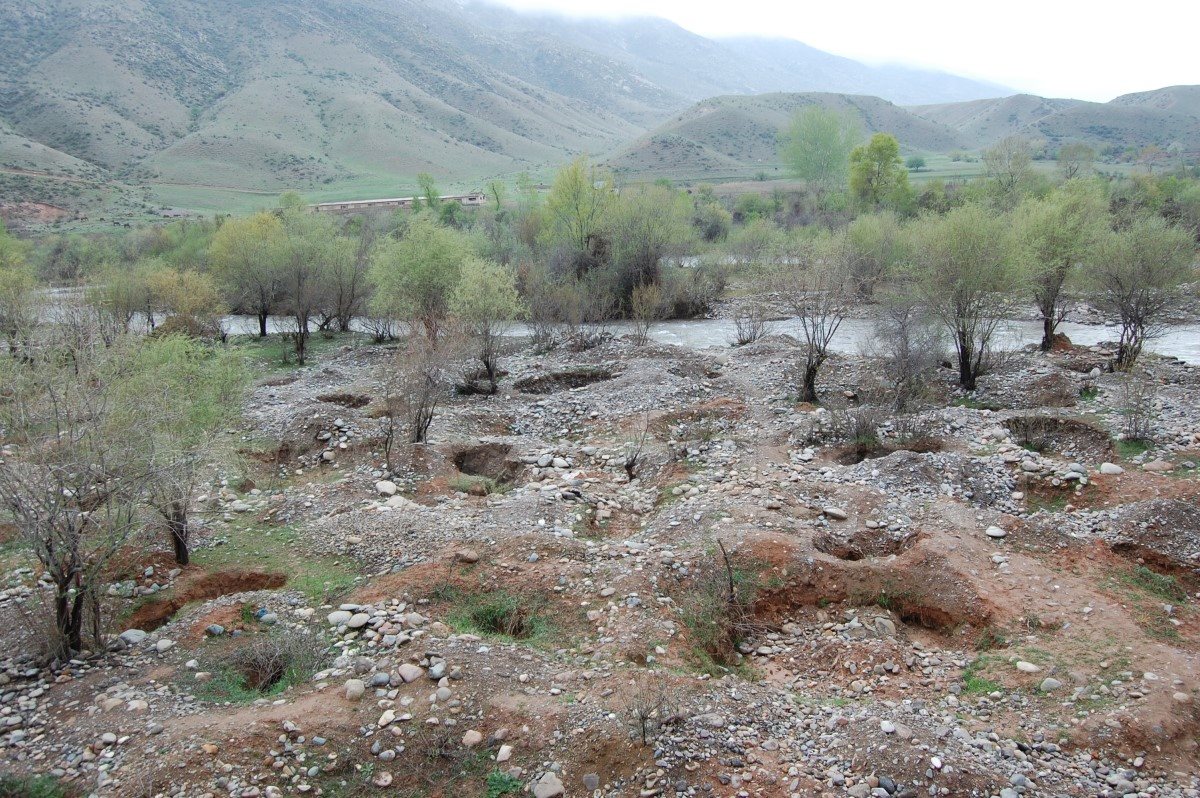 Возле села Кызыл-Токой Чаткальского района, в пойме реки Терексай один золотоискатель так увлекся поиском драгметалла, что даже начал использовать технику. Инспекционный орган, конечно, отреагировал и наложил штраф. Но факт остается фактом: пойма реки так и осталась изуродованной.