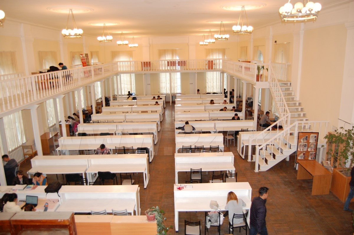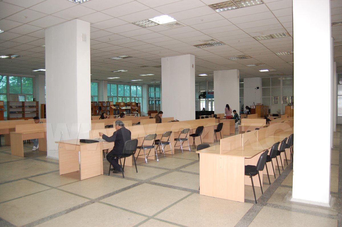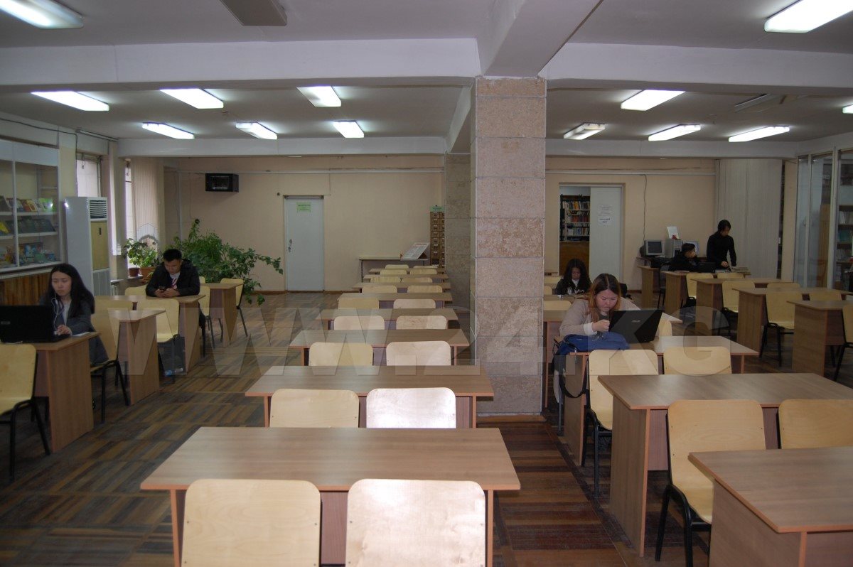 Один из передовых и престижных вузов страны – Кыргызско-Российский Славянский университет имени Б.Ельцина. Тот же почти пустующий читальный зал, пара-тройка студентов. Двери открыты тоже до 17.00.