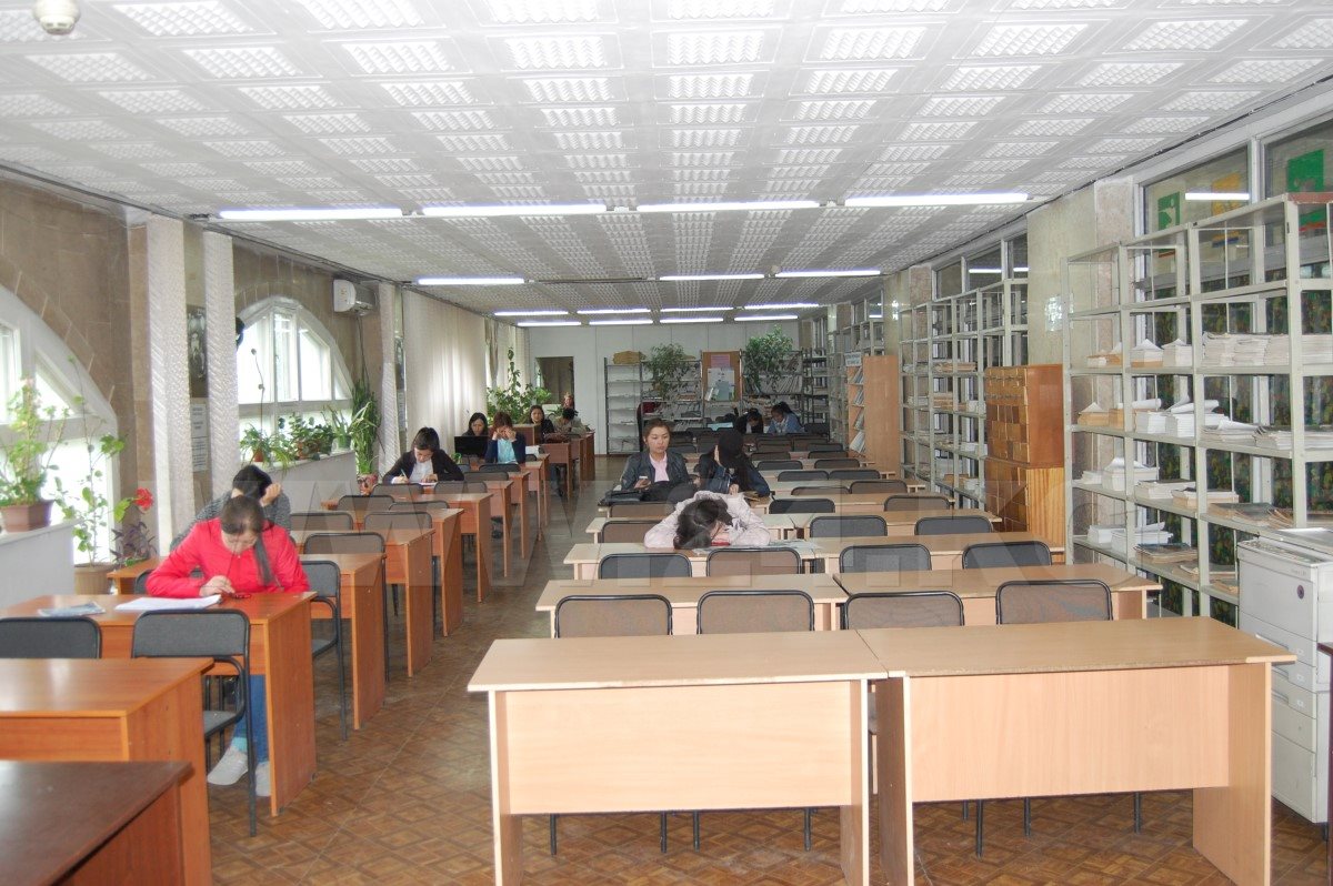 В библиотеке другого крупного вуза страны - Бишкекского гуманитарного университета - будущих обладателей дипломов чуть больше. В читальном зале примерно 15 человек. Всего же количество учащихся вуза более 10 тысяч. Как рассказали библиотекари, посещаемость хорошая, а то, что зал полупустой, объяснили тем, что мы пришли «после обеда, когда людей мало».