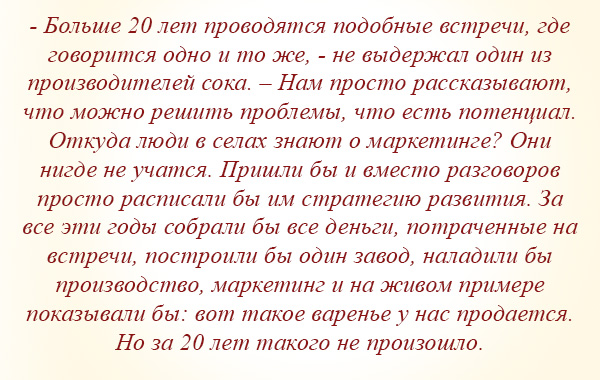 - Просто один таджик круто поднялся, продавая абрикос. Ему сейчас со всего мира заказывают, - невесело заметил один из переработчиков.
