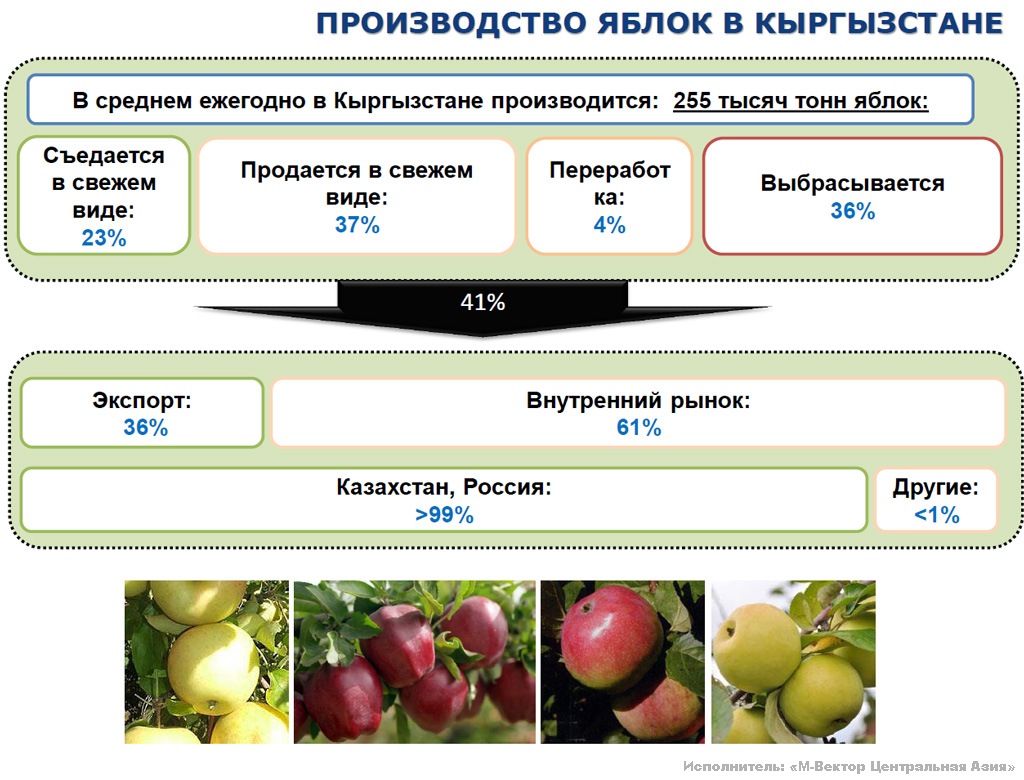 Пример второй. Яблок по всей республике производится 255 тысяч тонн в год. Какой процент просто выбрасывают, скармливают скоту, гниет? 36 процентов! Хотя для переработчиков, по сути, это золото.